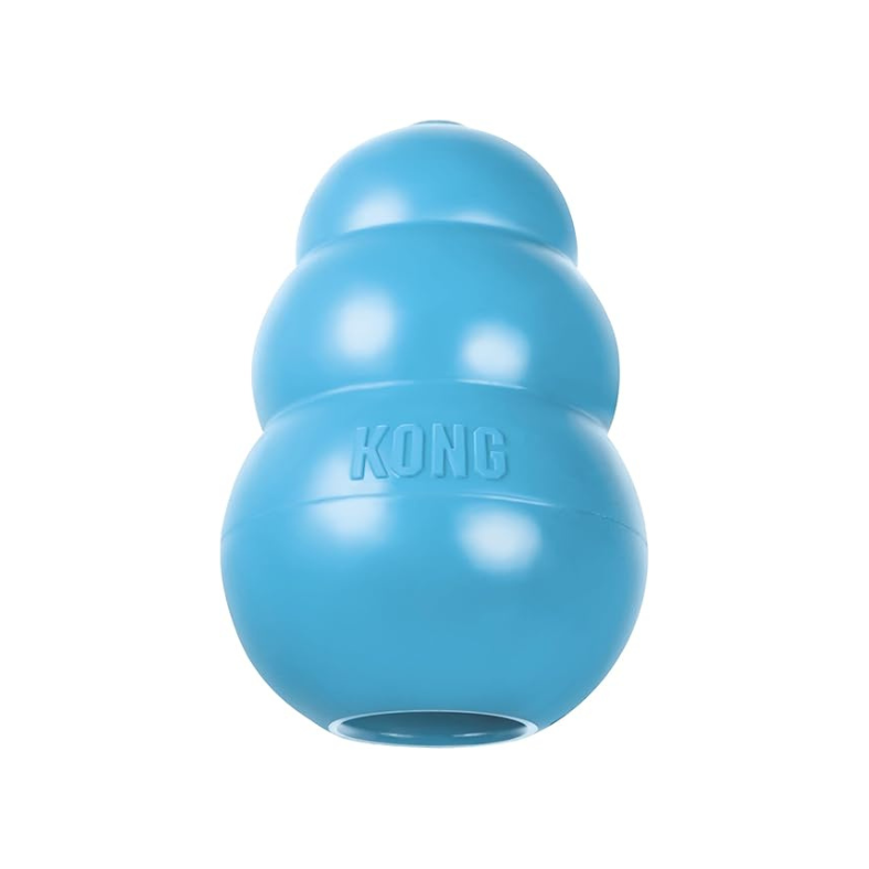The Puppy Kong dog toy is made with a unique, natural rubber formula that is the most gentle within the Kong rubber toy line. Designed to meet the needs of a puppy’s 28-baby teeth, it helps teach appropriate chewing behavior while offering enrichment and satisfying a younger pup’s instinctual needs while the erratic bounce make it ideal for those pups that just want to play.