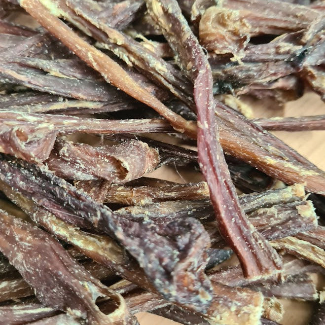 Lamb gullet spaghetti is 100% lamb. These are an easily disgested, natural chew in a size that works for both big and little dogs. All our at home BMDR dogs love them. Our oldies who are dentally challenged manage these very well too.