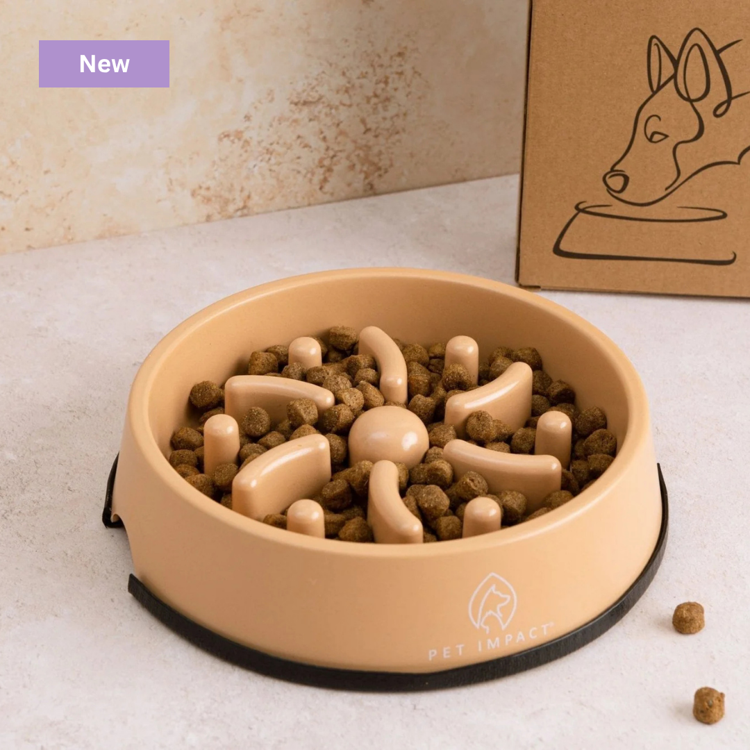 Studies have shown that mental stimulation is emotionally rewarding to our dogs and that they prefer to work for their food rather than have it freely available. The Pet Impact Slow Feeder Enrichment Bowl was designed by vets to encourage optimal brain engagement by promoting natural foraging behaviour and to slow down eating without causing frustration.